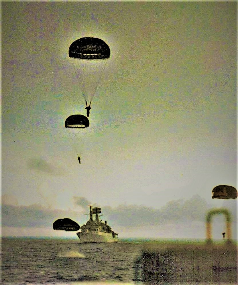 During the UK part of our training things got very heated. Working with the RAF and flying in to airfields in our C130s, it was deemed by RAF regiment defence forces that during the training runs, we were blown out of the sky long before we approached touchdown onto the tarmac. As the Argies had similar ground to air defences, then they could take us out on our approach too.