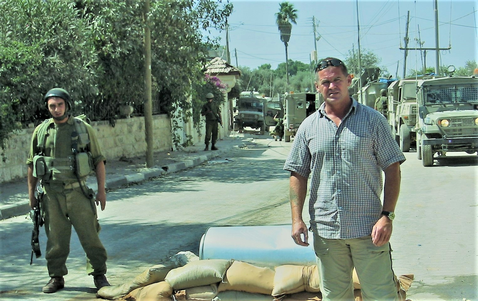 Bob Shepherd working with a small news team back in 02 “negotiating” a way through the city of Ramallah…”oh well, there’s always another route through.“