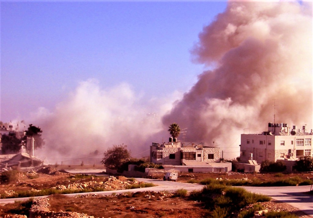 I took this photo in 2002 during the Second Intifada when the IDF took weeks slowly destroying Arafat’s Mukata inside Ramallah, by use of engineered explosives, tank rounds and machine gun fire. After this period I went inside the Gaza Strip with a news team to cover the conflict from there. Over twenty years later heavy over the top targeting still continues inside close communities of civilians.