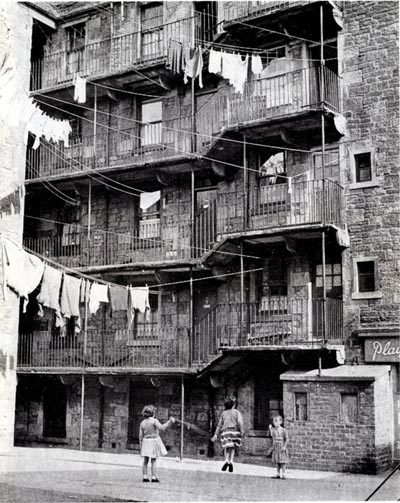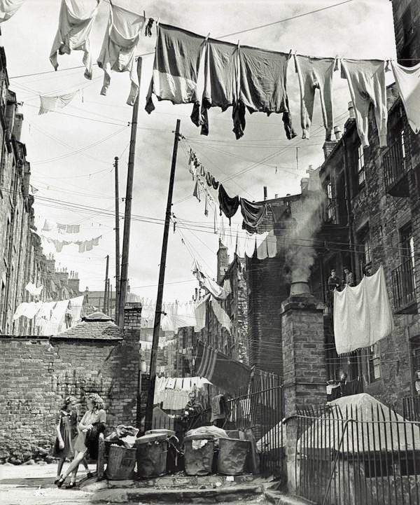 A great 50s shot of Dundee, Scotland…note the man coming along the ally behind the dustbins, and the people hanging about on the balcony’s on the right side, and the heed oot the windie.