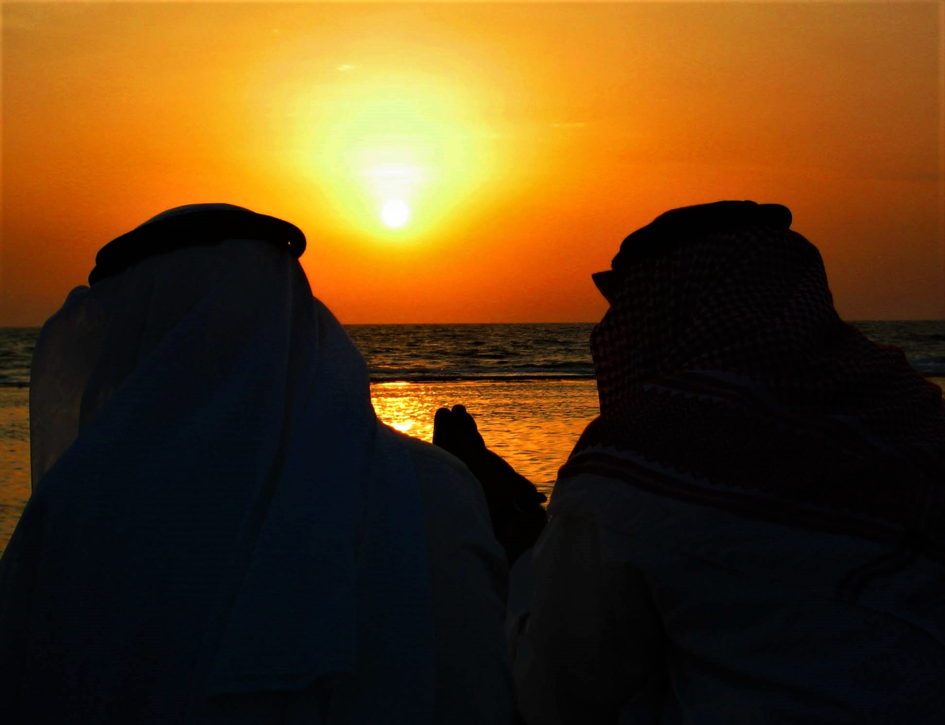 A chat on the Western shores of Saudi Arabia at sunset.