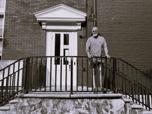 Standing outside of the same court doorway as John Brown did on his way to being hanged back in November 1859.