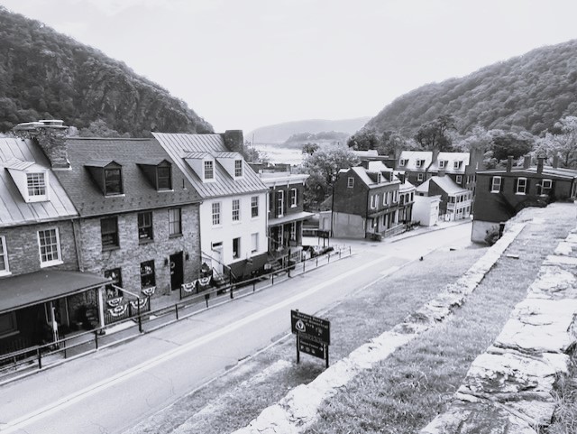 The town of Harper’s Ferry lies on a finger between two famous rivers. The Shenandoah River meets the Potomac River behind the bottom of this street. In the background you can see the Potomac moving it’s way through Maryland.