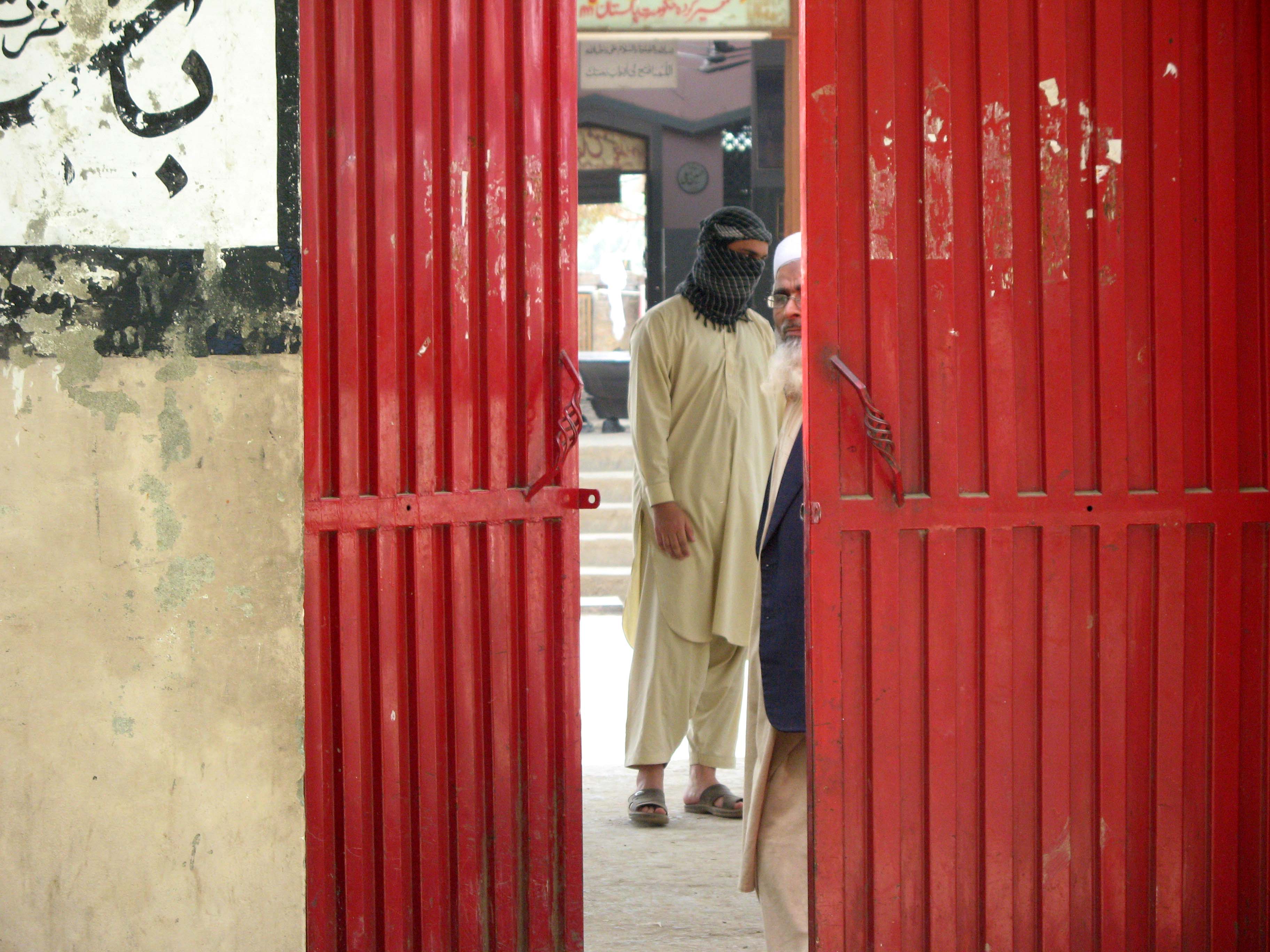 Member of Frontier Corps overlooking Peshawar, Pakistan 2007A view through the gates of the Red Mosque, Islamabad, 2007Self-described Afghan “Talib”, Quetta, Baluchistan Province, Pakistan 2007Antique tapestry depicting battle between Baluch and British Forces, Governor’s mansion, Quetta, Pakistan 2007Commemorative plaque, formal gardens, Governor’s Residence, Quetta, Pakistan 2007Baluch man in traditional headdress, Quetta, Baluchistan Province, Pakistan 2007Western cameraman operating under watchful eye of the authorities, Quetta 2007Riot police, Islamabad, Pakistan 2007